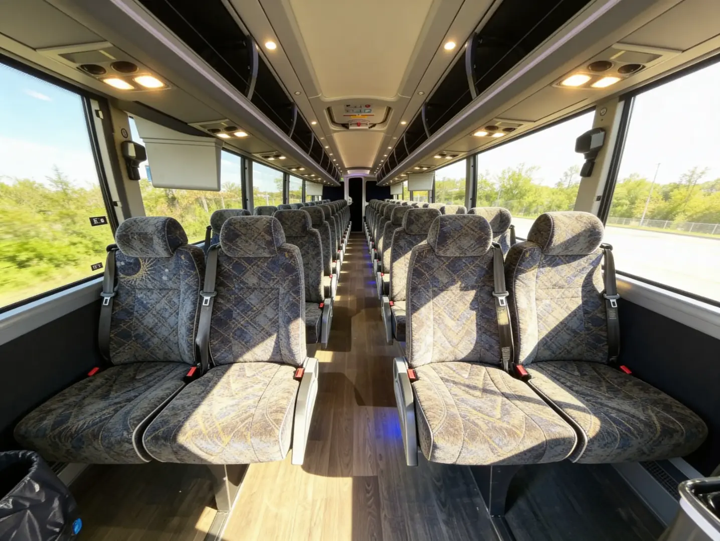 This minibus balances comfort and maneuverability, making it ideal for navigating tight downtown streets while still offering enough space for larger groups. Inside, you'll find high-back reclining seats, individual climate controls, overhead storage bins, and optional WiFi and power outlets. There's a rear luggage compartment for bigger bags, so passengers can keep the aisle clear even on longer trips. Many models also include PA systems and video monitors-great for tour leaders or sports teams that need to communicate on the move. Because it's smaller than a full-size coach, this minibus can access locations that often restrict larger vehicles, such as certain hotel entrances, campus loading zones, and city parking areas.